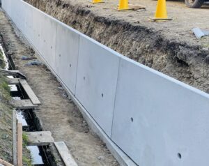 L型 擁壁工事 (その他) 今回の工事内容は、 ・基礎コンクリート打設 ・L型擁壁の設置 ・擁壁上部にメッシュフェンス設置 ・水路を挟んで反対側にブロック・フェンス設置 ・芝生張り を行いました。 Before (施工前 […]