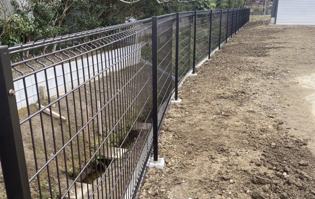 黒色のメッシュフェンスを採用することで、周囲の景観になじみつつ、引き締まった印象を与えています。