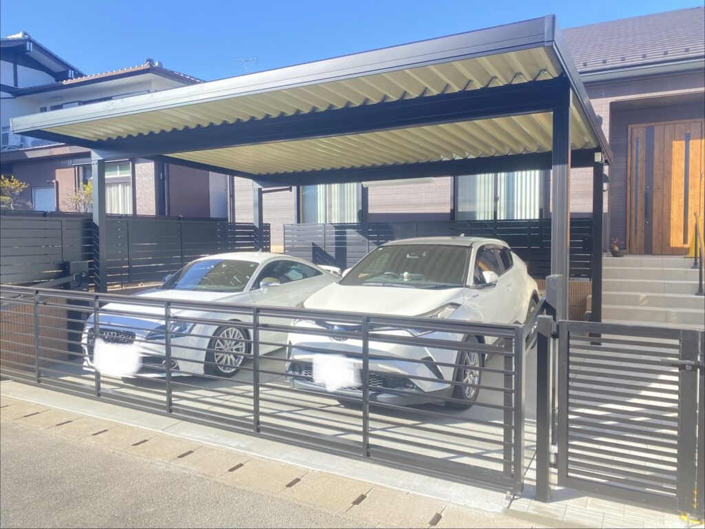 車の出入りや乗り降りのしやすさ、安全性、そして外観デザインの統一感を大切にし、住まい全体の印象が整う空間を実現しています。