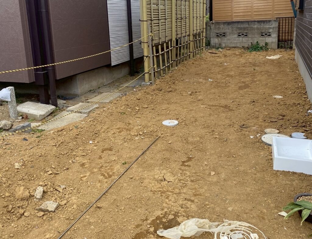 今後の芝張りやフェンス、物置の設置に備えて下地を整えています。