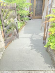 玄関アプローチ土間コンクリート 刷毛引き仕上げ Before (施工中) 施工前の玄関アプローチは、足元が不安定でした。 また、既存の植栽や門扉の雰囲気は良いものの、動線部分が全体として、不安定な状態でした。 日常的に使 […]